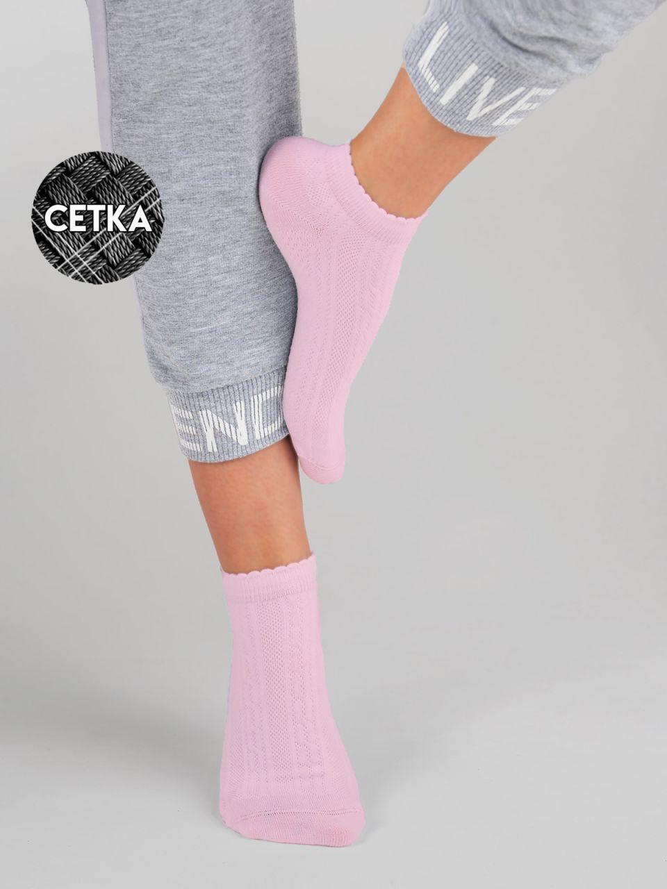 Укороченные женские носки с усиленным рельефным эффектом. Изящный борт с мелким пикотом. У модели натуральная основа — высококачественный гребенной хлопок, за счёт чего ногам будет комфортно и уютно на протяжении дня. Синтетические нити в составе отвечают за долговечность, эластичность и устойчивость изделия к истиранию. Нежные спокойные цвета позволят сочетать модель с любой одеждой и обувью, дополняя и преображая ваш наряд.