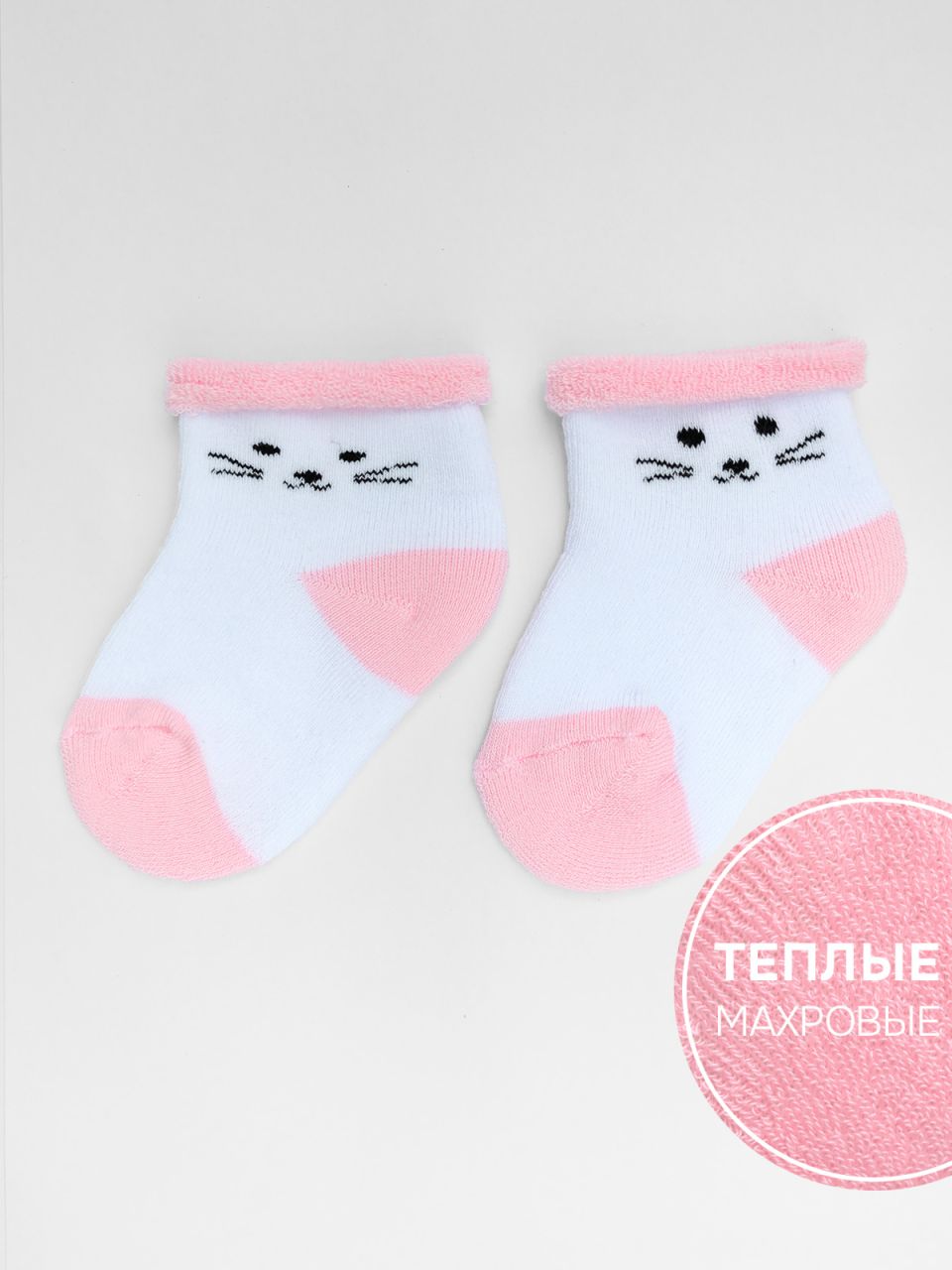 Зимние носки для малышей. Мягкая плюшевая основа из натурального гребенного хлопка подарит ощущения мягкости и уюта, защищая кожу ножек от раздражений. Нежное сочетание белого и розового цветов сделает даже самый простой наряд более привлекательным, а забавная мордочка на паголенке поднимет настроение. Идеальный вариант для самых маленьких ножек в холодную пору.