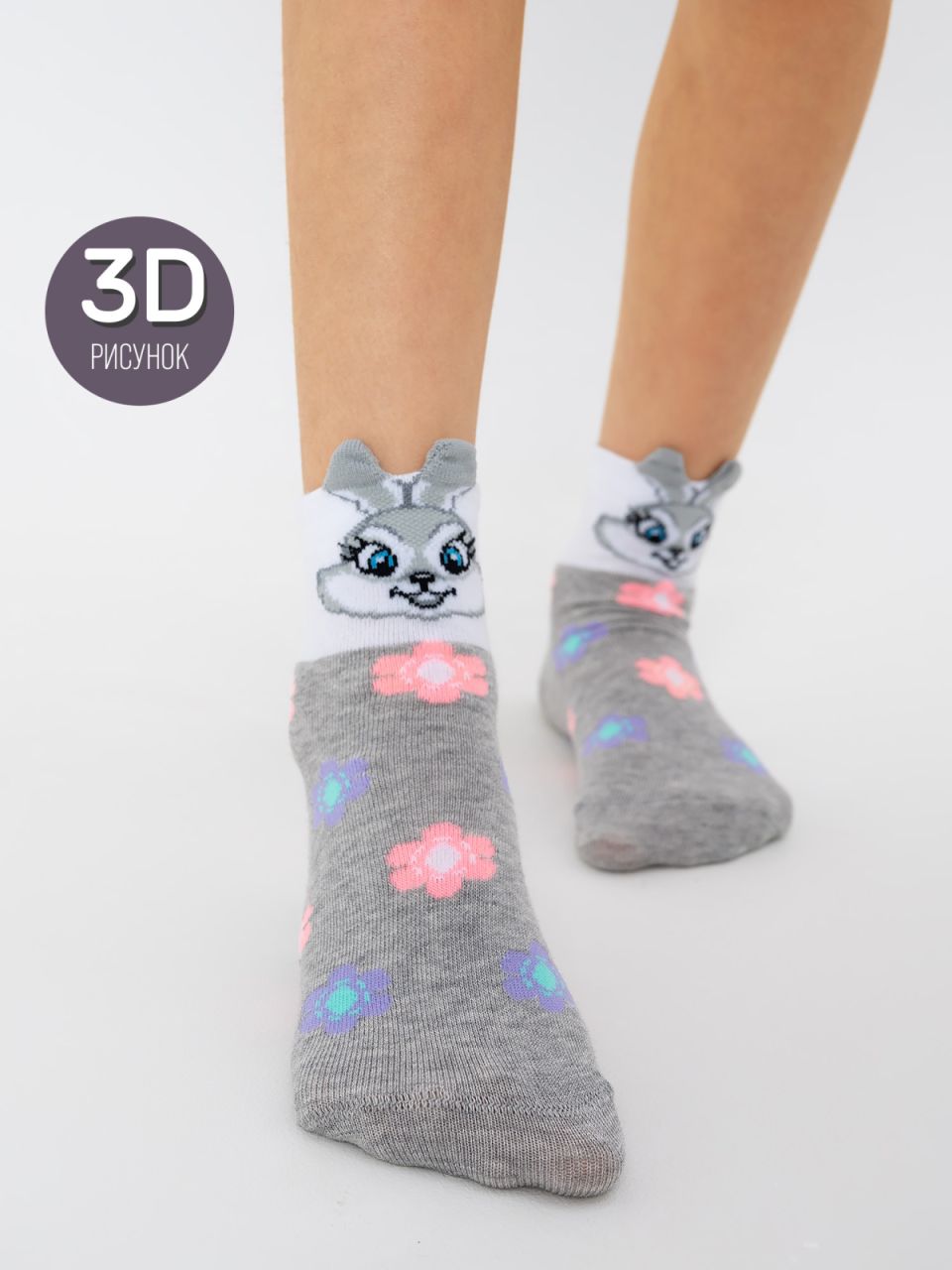 Детские носочки с «ушастым» 3d-рисунком. Нежные цвета и дружелюбный заяц создают невероятно милую изящную модель. Благодаря натуральной основе из высококачественного гребенного хлопка в носочках комфортно на протяжении дня, ножки ребёнка дышат. Для прочности и устойчивости к истиранию в состав добавлены синтетические нити.