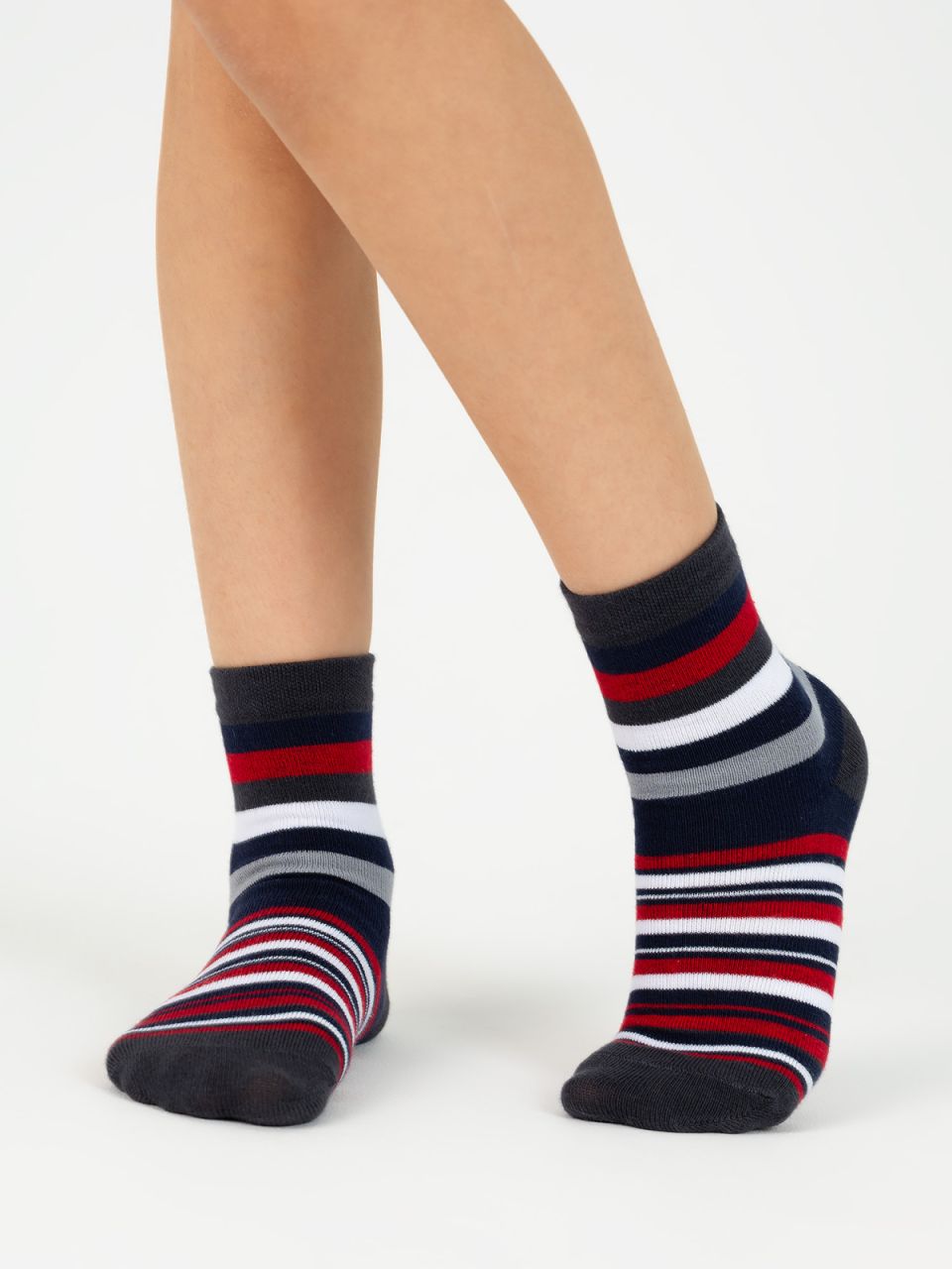 Детские носки в полоску. Натуральный хлопок в составе и эластичная резинка, не сдавливающая ногу, обеспечат лёгкость и комфорт каждому шагу ребёнка. Носки идеально подойдут для повседневного использования, а яркий полосатый рисунок добавит красивые акценты и оживит любой образ.
