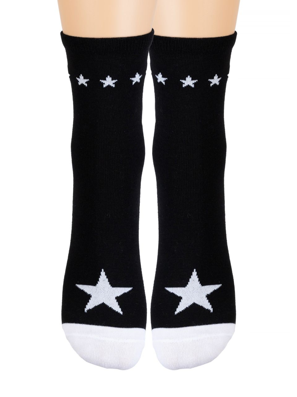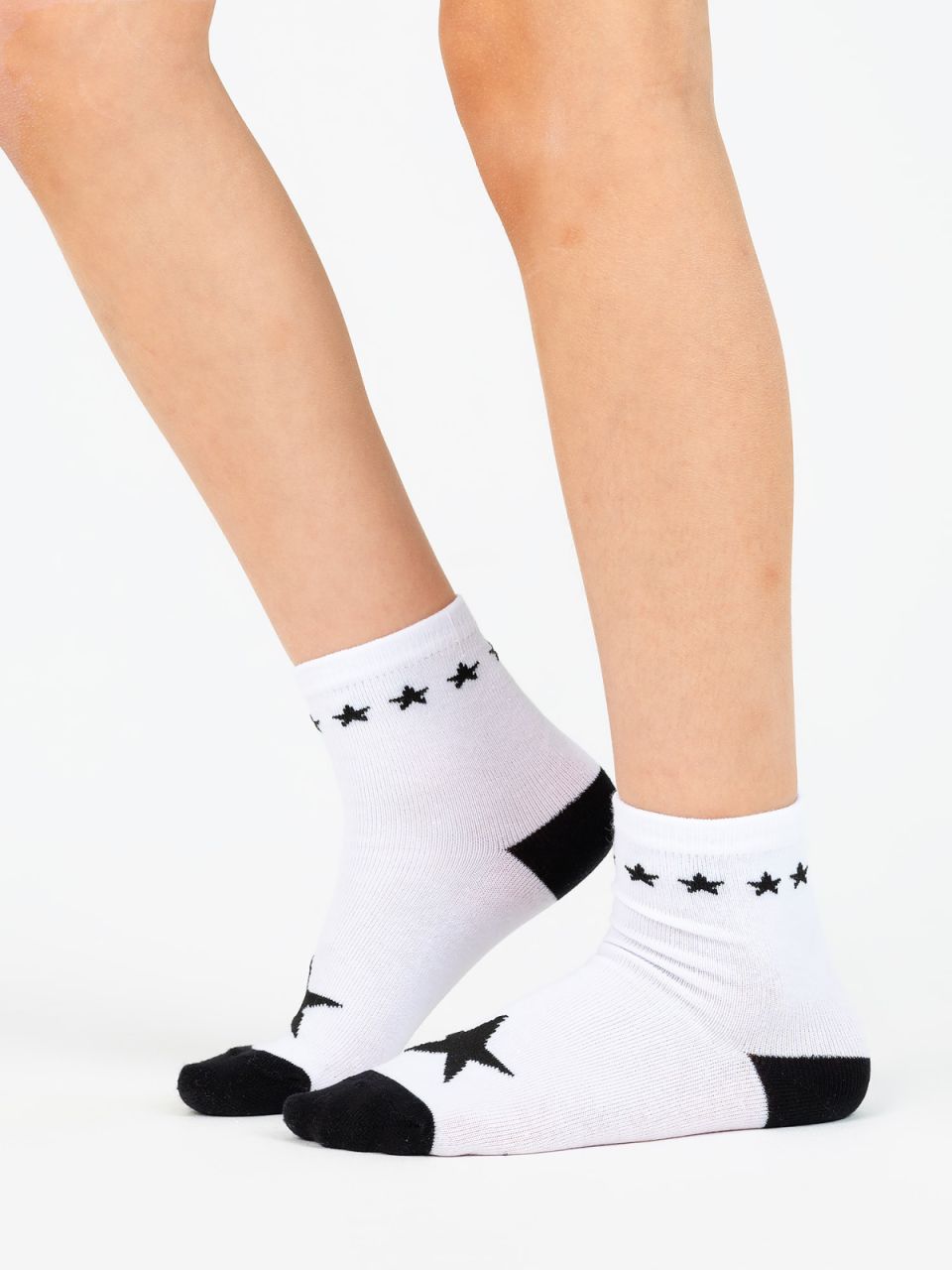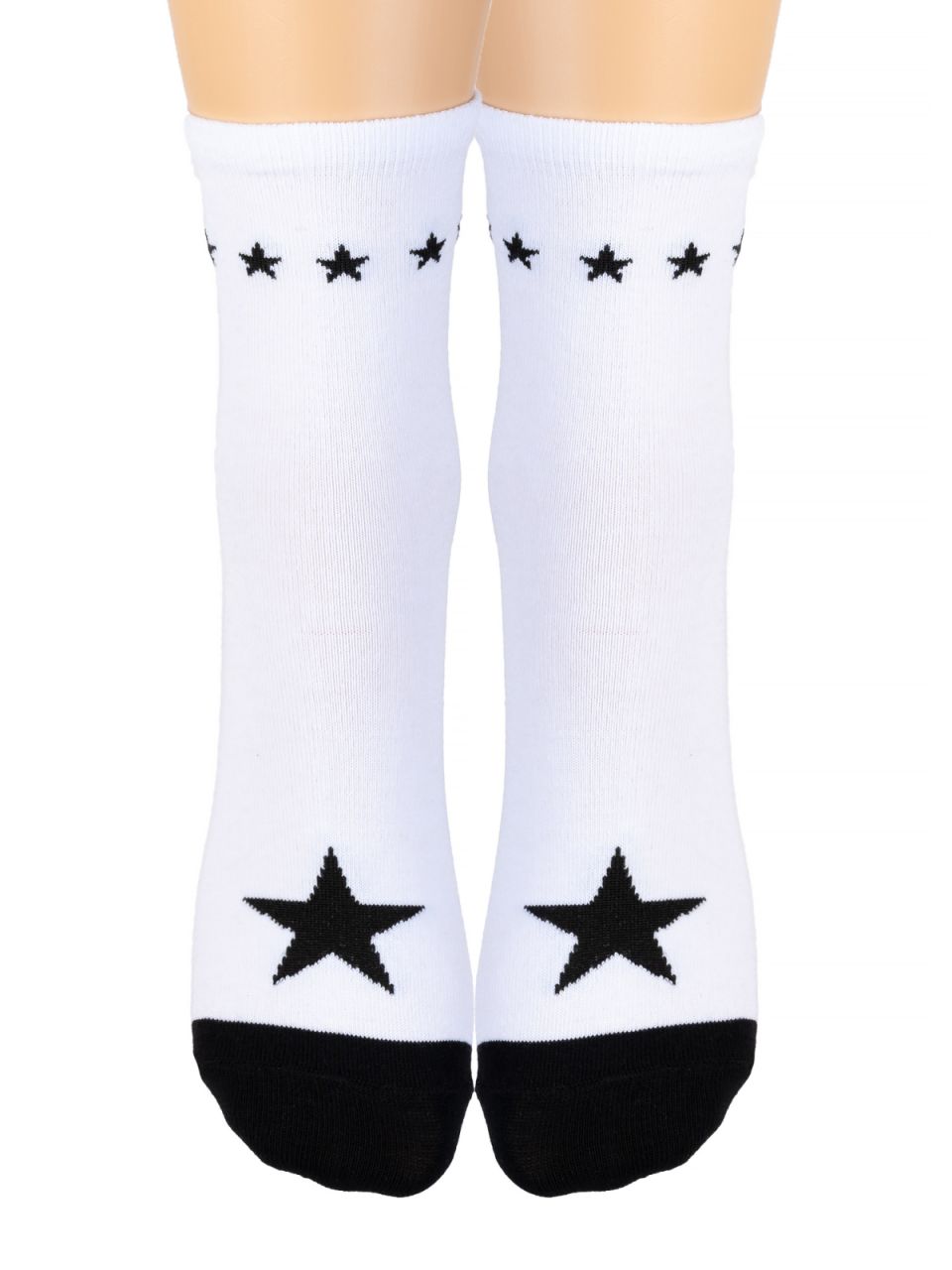 Стильные детские носки. Связаны из натурального гребенного хлопка. Материал отличается своим удобством и комфортом, он мягок, прост в уходе и хорошо пропускает воздух. Гармоничное сочетание белого и чёрного позволит комбинировать носки с любым детским образом, а рисунок звёзд поднимет настроение вашему ребенку.