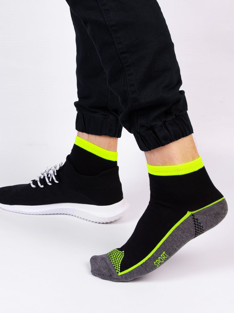Мужские укороченные носки с ярким акцентом. Базовая модель из натурального хлопка подходит как для повседневной носки, так и для занятий спортом. Носки с акцентным неоновым мыском добавят немного красок вашему образу.