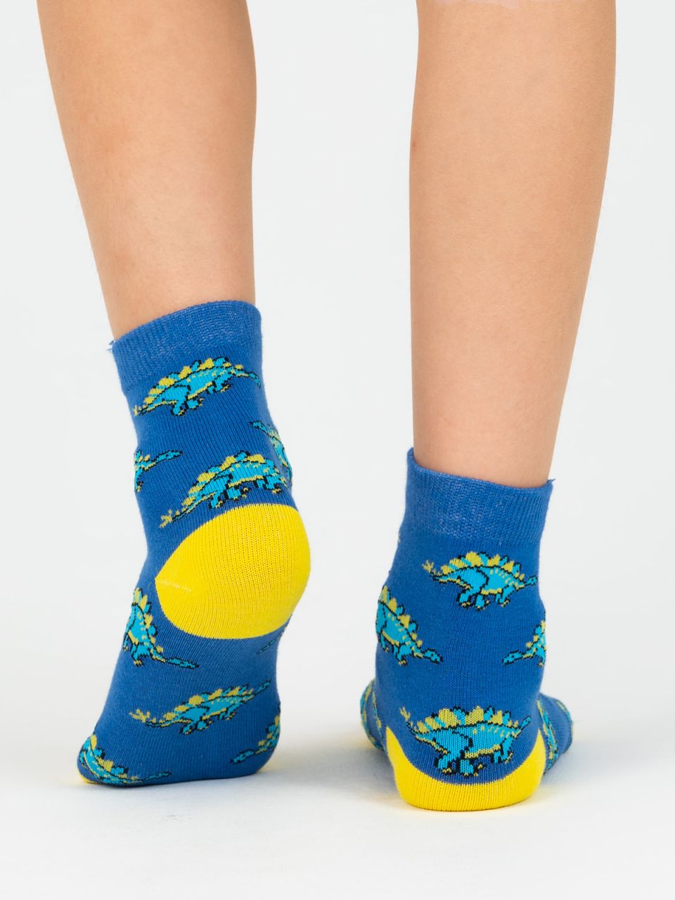 Детские носки с динозаврами, изображенными по всей длине изделия. Благодаря натуральной хлопковой основе изделие подарит ножкам ощущения мягкости и комфорта, при этом обеспечивая отвод влаги и защищая кожу от раздражения. Эластичная резинка надёжно фиксирует носок на ноге. Красочный дизайн привлечёт внимание и приятно удивит вашего ребенка.