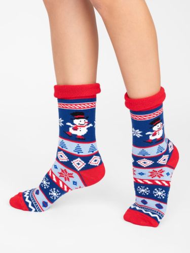 Женские носки. Модель, связанная из натурального гребенного хлопка, дышащая, мягкая, идеальный вариант для повседневной носки. Мягкий борт нежно облегает ногу, не доставляя дискомфорт. Плюшевые носочки с очаровательными рисунками в новогодних цветах подарят ощущение приближающего праздника.