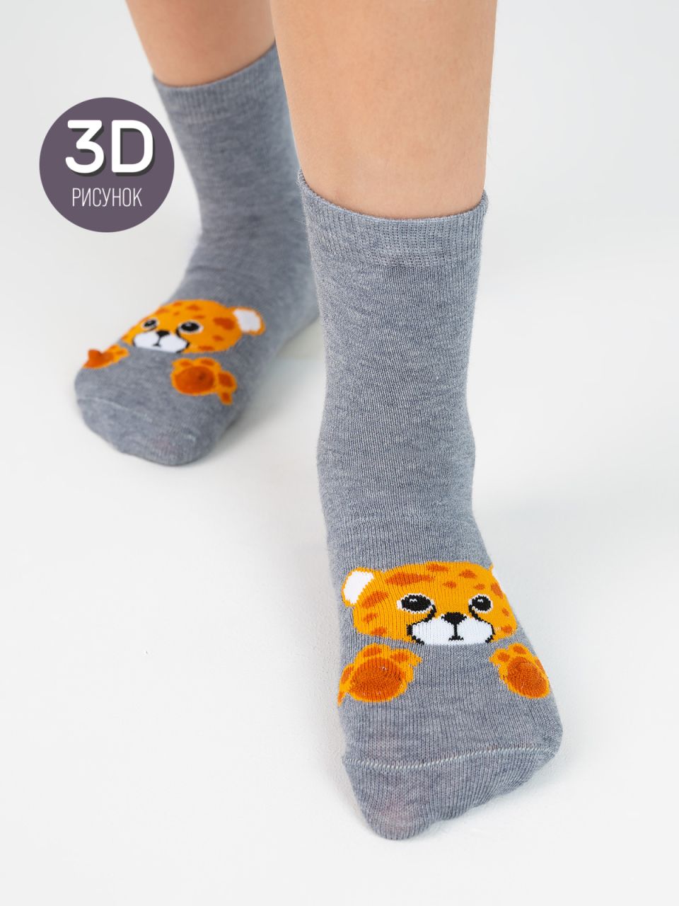 Детские носки с тигрёнком. Натуральный гребенной хлопок в составе подарит ощущения максимального комфорта и мягкости. Эластичная резинка фиксирует посадку изделия и не сдавливает ножку. Очаровательный рисунок непременно порадует и впечатлит вашего ребёнка.