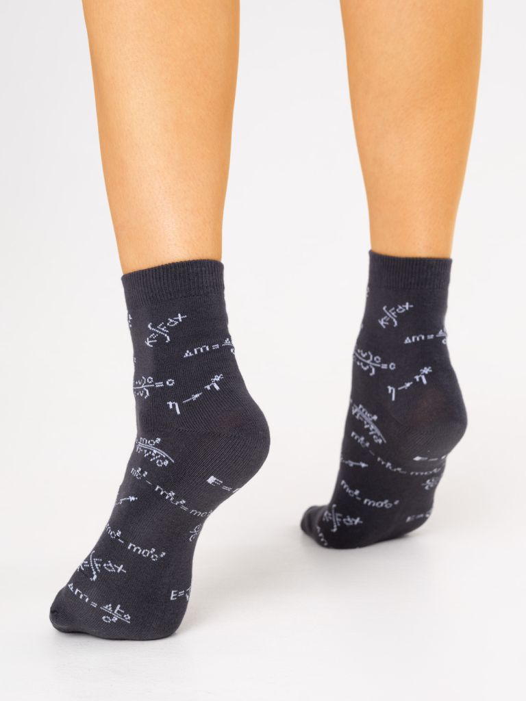 Детские носочки с математическими уравнениями, изображенными по всей длине изделия. Связаны из натурального гребенного хлопка, который обеспечит повышенный комфорт и уют на протяжении всего дня. Оригинальный рисунок особенно оценят юные любители сложных задач и вычислений. Такие носки, без сомнений, подчеркнут индивидуальность ребёнка и добавят в образ стильные акценты.