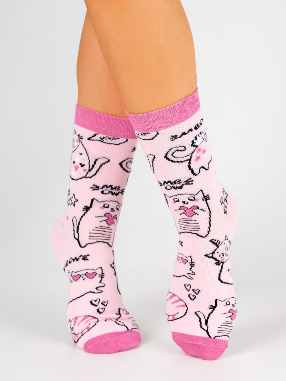 Детские демисезонные носочки. Модель связана из натурального гребенного хлопка, мягкая. комфортная, тактильно приятная. Благодаря составу они обладают воздухопроницаемостью и гигроскопичностью. Очаровательные носки с котиками не оставят равнодушным ни ребенка, ни взрослых. Модель дополнит образ и зарядит хорошим настроением.