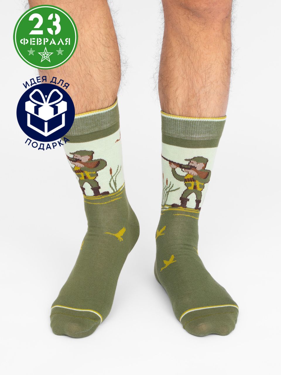 Мужские демисезонные носки. Оригинальная модель связана из натурального гребенного хлопка, благодаря составу, обладает воздухопроницаемостью и гигроскопичностью, очень мягкая и комфортная – находка для повседневной носки и активных прогулок. Носки идеально подходят для любителей охоты и станут креативным подарком для мужчин, ценящих практичные вещи с изюминкой.