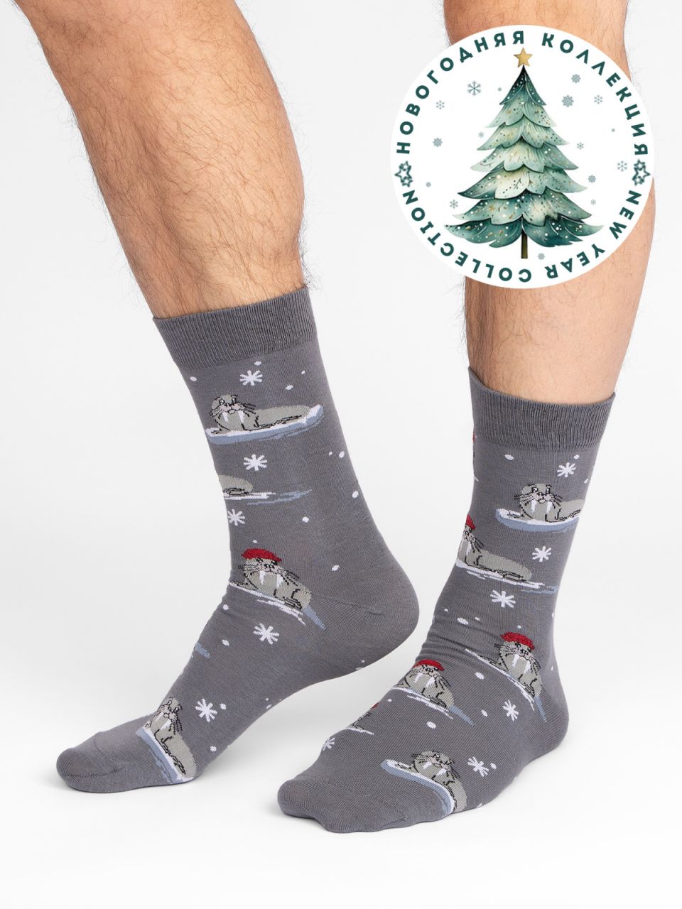 Мужские носки. Креативная модель связана из натурального гребенного хлопка, что гарантирует отличную воздухопроницаемость и гигроскопичность – находка для повседневной носки. Носки классической длины с новогодними рисунками станут креативным подарком для мужчин, ценящих стиль и оригинальность.