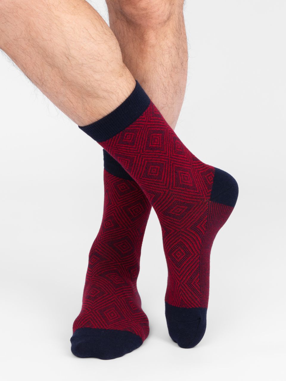 Мужские носки. Модель из натурального гребенного хлопка – это комфорт и забота для ваших ног. Лаконичная модель классической длины с геометрическим рисунком – находка для ценителей стильных аксессуаров. Носки можно смело надевать как с брюками и туфлями, так и с более расслабленным образом.