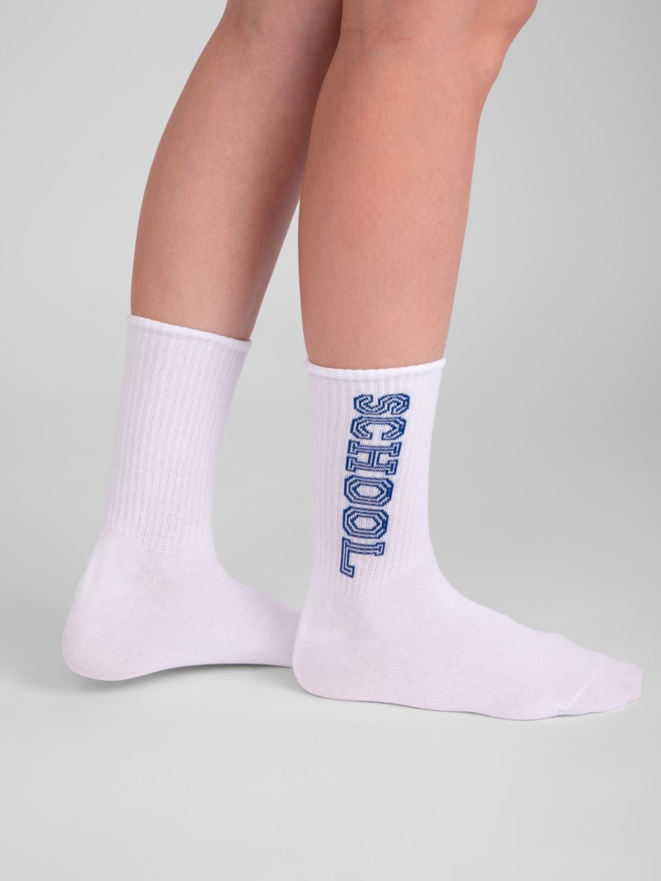 Детские носки. Мягкая модель связана из натурального гребенного хлопка, что гарантирует отличную воздухопроницаемость и гигроскопичность, а также комфорт и безопасность для нежной кожи ребенка - прекрасный вариант для повседневной носки. Широкая резинка мягко облегает ногу, не сползая и не доставляя неприятных ощущений. Лаконичная надпись на паголенке «SCHOOL» не нарушает классический школьный стиль, а лишь немного разбавляет его.