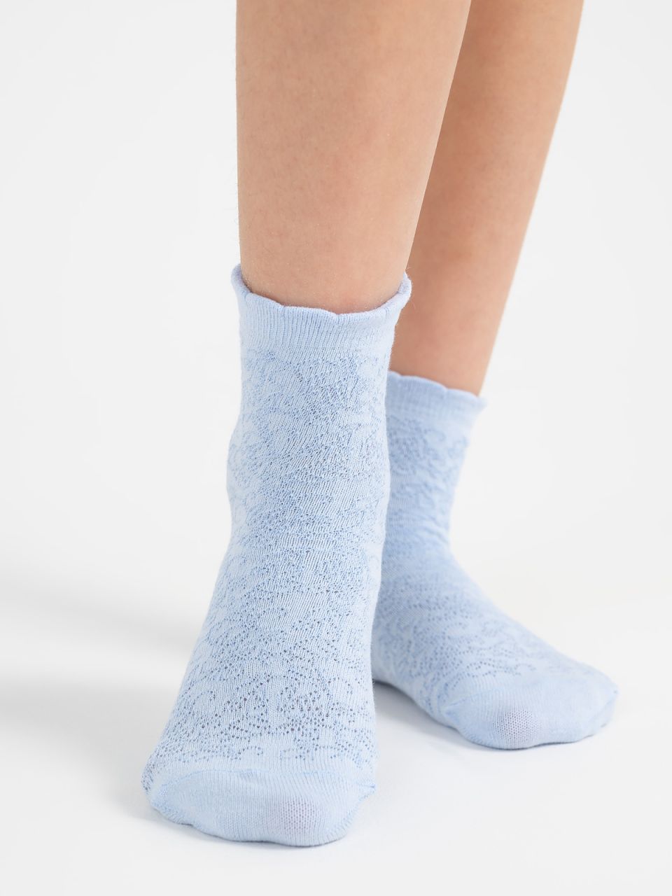 Невероятно нежные детские носочки, связанные по технологии обратной платировки. Главные достоинства этого переплетения - узор с имитацией ажура и усиленная прочность изделия. В основе пряжи высококачественный гребенной хлопок, за счёт чего ножкам комфортно на протяжении дня. Эстетики добавляет элегантный фигурный борт. Носочки подойдут утончённым девочкам и гармонично дополнят праздничный образ.
