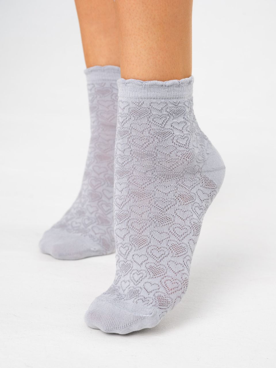 Невероятно нежные детские носочки, связанные по технологии обратной платировки. Главные достоинства этого переплетения - узор с имитацией ажура и усиленная прочность изделия. В основе пряжи высококачественный гребенной хлопок, за счёт чего ножкам комфортно на протяжении дня. Эстетики добавляют элегантный фигурный борт и узор из сердечек. Носочки подойдут утончённым девочкам и гармонично дополнят праздничный образ.