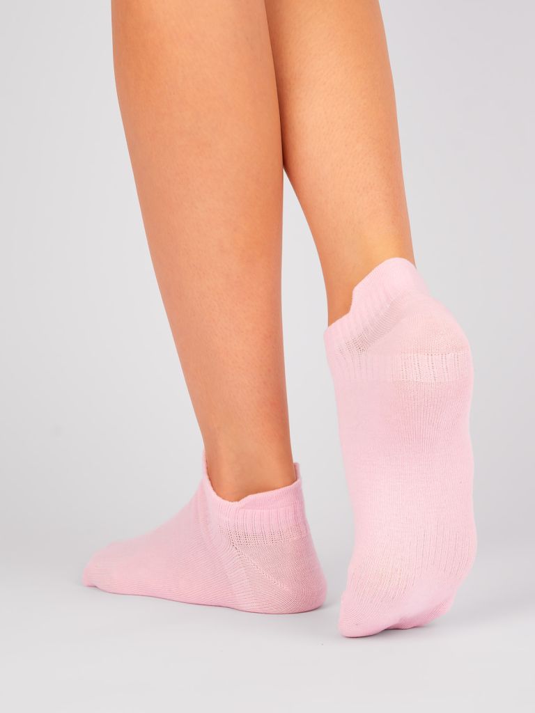 Спортивные однотонные укороченные детские носки. Особенностью модели является фигурный борт, выступающий вверх на пяточке. Для улучшения посадки носков на ножках ребёнка резинка борта расширена и продлена на пятку. Имитация резинки присутствует также в районе мыска. Мягкая хлопковая основа дарит ножкам комфорт и удобство на протяжении дня. Модель идеально подходит для базового гардероба ребёнка.