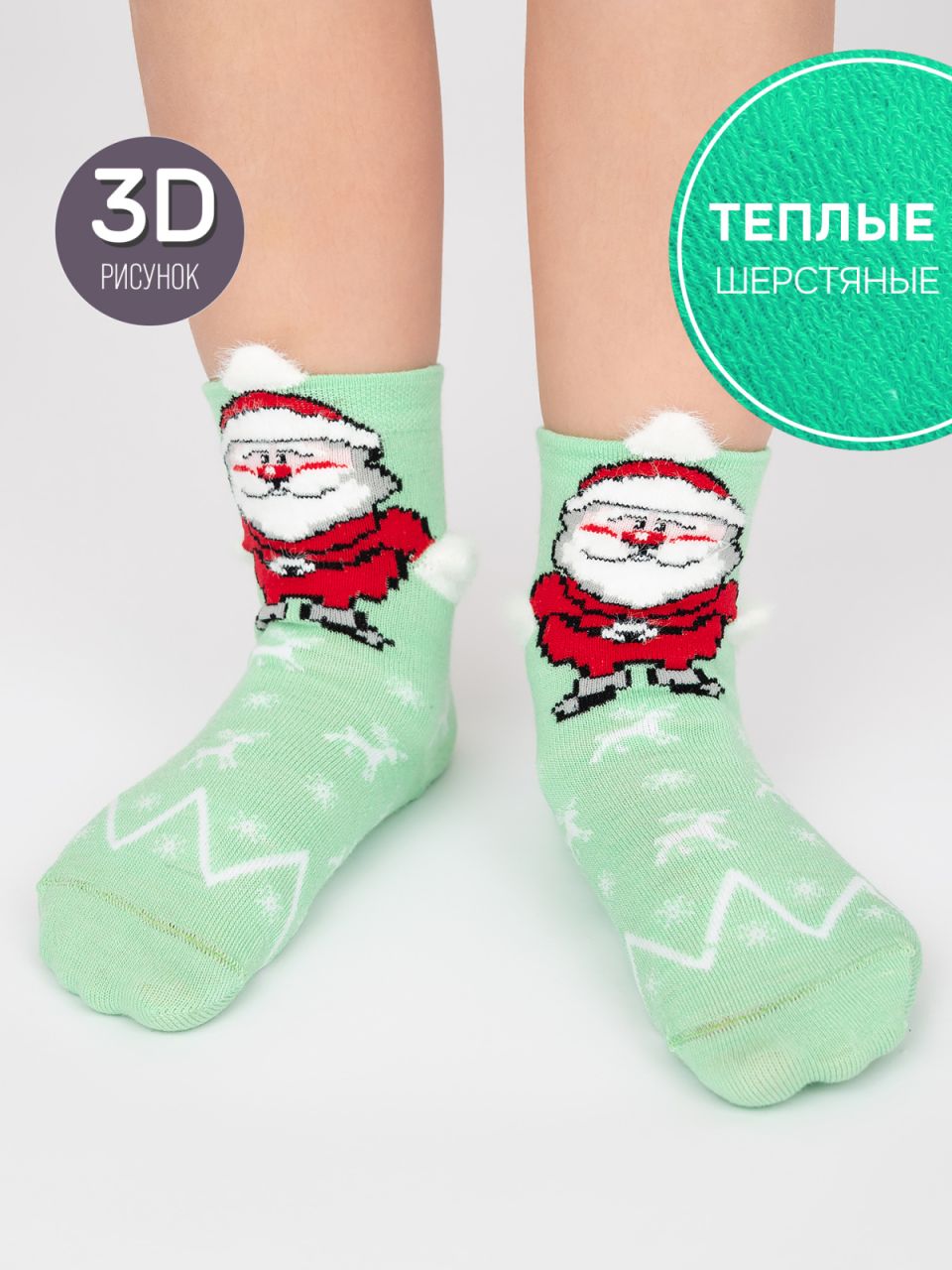 Детские носки с рисунком веселёго деда мороза. Очаровательная модель, связанная из натурального гребенного хлопка - находка для гардероба вашего ребенка. Теплые носочки согреют ножки малыша, благодаря дизайну, никого не оставят равнодушным.