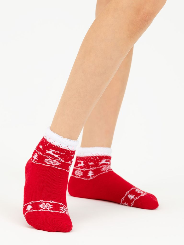 Рождественские носочки с оленями, елками и снежинками – хит продаж, создающий чудесное праздничное настроение. Ажурный борт на носочках красиво и аккуратно облегает ножку. Модель представлена в трех цветах: классическом красном, праздничном зеленом и задорным синем. Натуральный хлопок, из которого связаны носочки, прекрасно впитывает влагу, дарит ощущение комфорта и защищает от зимних холодов.