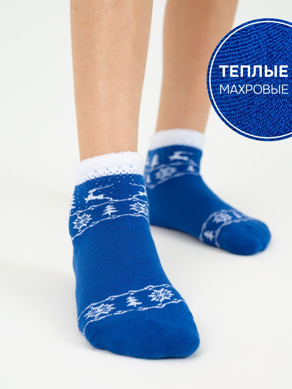 Рождественские носочки с оленями, елками и снежинками – хит продаж, создающий чудесное праздничное настроение. Ажурный борт на носочках красиво и аккуратно облегает ножку. Модель представлена в трех цветах: классическом красном, праздничном зеленом и задорным синем. Натуральный хлопок, из которого связаны носочки, прекрасно впитывает влагу, дарит ощущение комфорта и защищает от зимних холодов.