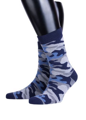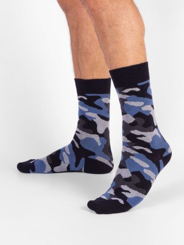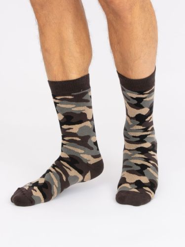 Тёплые мужские носки камуфляжной расцветки в стиле милитари. Плотная хлопковая структура дарит комфорт и высокую терморегуляцию. За счёт полиамидных нитей изделие прочное и устойчивое к растяжениям. Удобство и практичность оценят охотники и рыбаки, носки удачно подойдут в качестве дополнения к основной экипировке. Также тематический дизайн привлекает внимание и в городской среде.