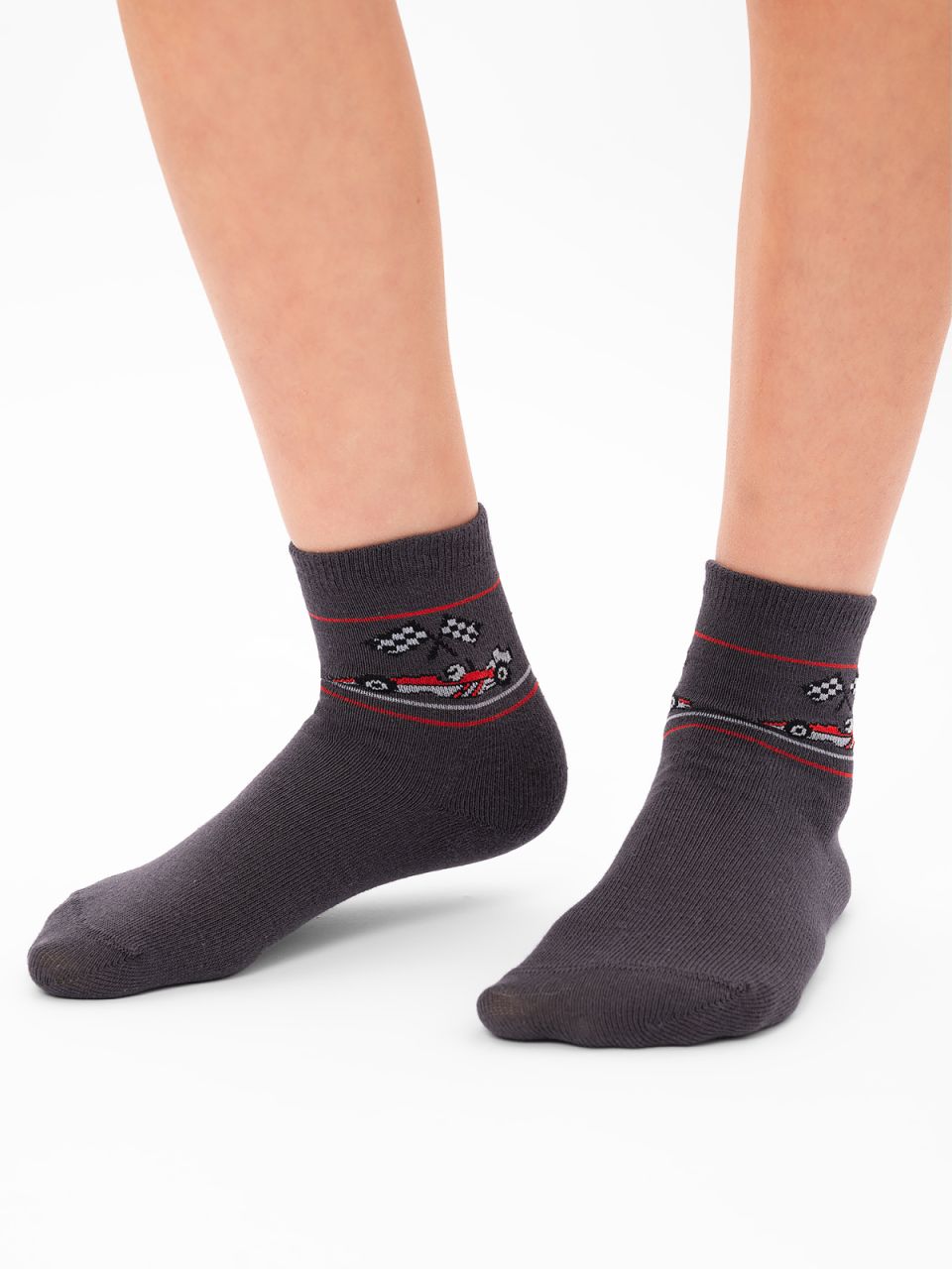 Детские демисезонные носочки, связанные из натурального гребенного хлопка, с тематическим компьютерным рисунком "Формула 1" понравятся любому мальчишке. Мягкая, дышащая модель, в которой детским ножкам будет комфортно в течение всего дня.