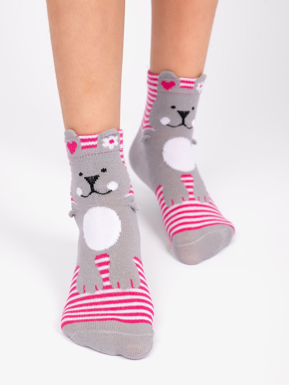 Милые носочки с «ушастым» 3D рисунком для самых маленьких ножек. Натуральный состав изделия гарантирует комфорт и уют на протяжении дня, при этом защищая нежную кожу ребенка от раздражения. Яркая полосатая основа и милый медвежонок, несомненно, порадуют и очаруют маленьких модниц.