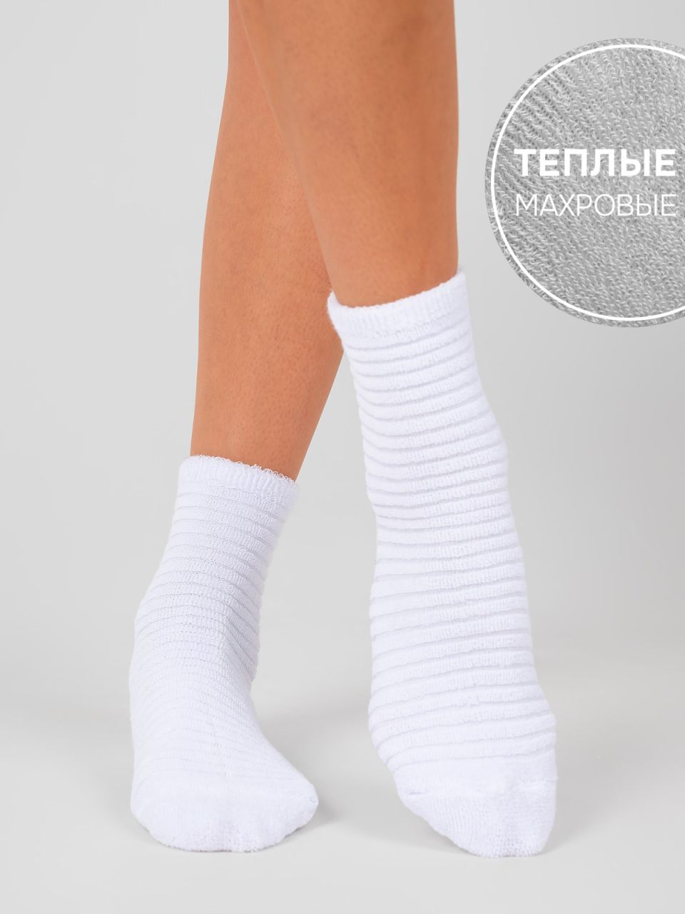 Женские плюшевые носки. В составе – натуральный гребенной хлопок, обеспечивающий повышенный комфорт на протяжении всего дня. Дышащий материал отведёт влагу и защитит кожу ног от раздражений. Модель с однотонным дизайном и мягкими фактурными полосами станет прекрасным аксессуаром к вашему гардеробу в зимнюю пору.