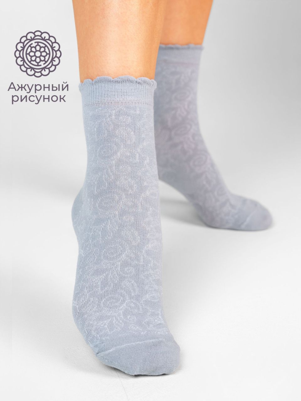 Женские носки в пастельных оттенках. Ажурная модель с бортом пике сочетаеся в разными стилями в одежде, будет смотреться как с кроссовками, так и с летней отккрытой обвуью. Благодря тому, что носки связаны из натурального гребенного хлопка, они обладают воздухопроницаемостью и гигроскопичноостью. Находка для ценителей стиля и комфорта.