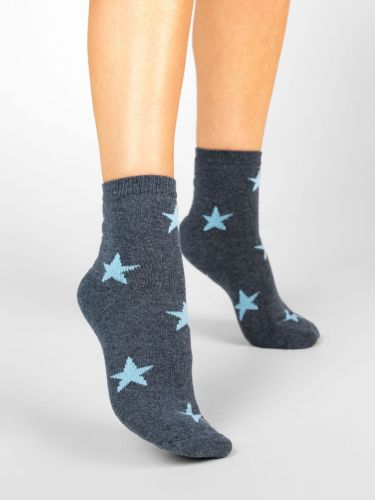 Женские носки с рисунком звёзд. Благодаря натуральной хлопковой основе изделие подарит ножкам ощущения мягкости и комфорта, обеспечивая отвод влаги и защищая кожу от раздражений. Ультрамодный звёздный рисунок модели скрасит ваши будни и сделает образ более стильным и завершенным.