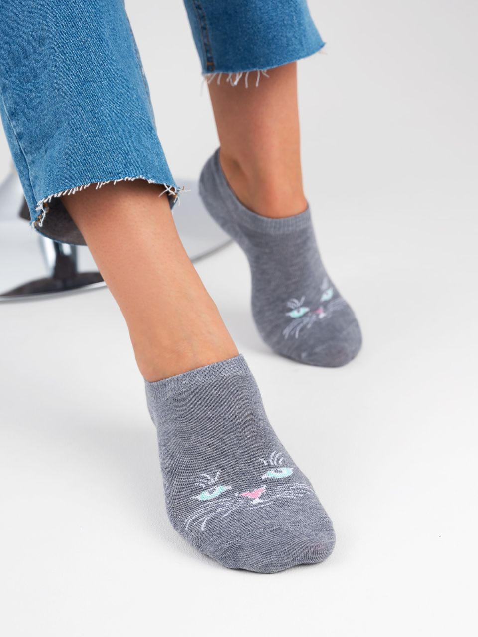 Ультракороткие носки из хлопка с рисунком «Кошка», удобная специальная форма, позволяет оставаться невидимыми в обуви, подходят, как для занятия спортом, так и для повседневной носки.