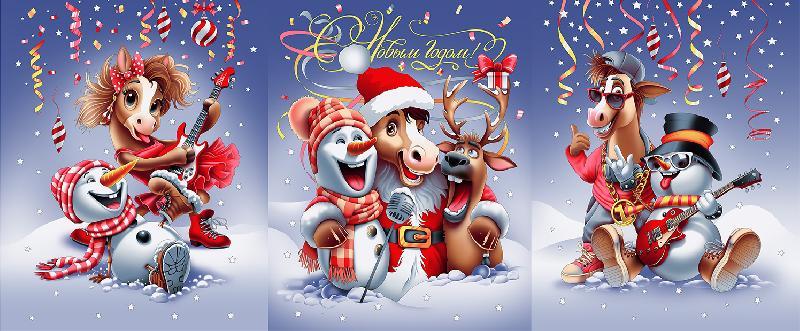 Набор новогодних полотенец из 3 штук размер 45х60см, изготовлен из вафельного полотна, 100% хлопок, плотность 150 гр/м2.