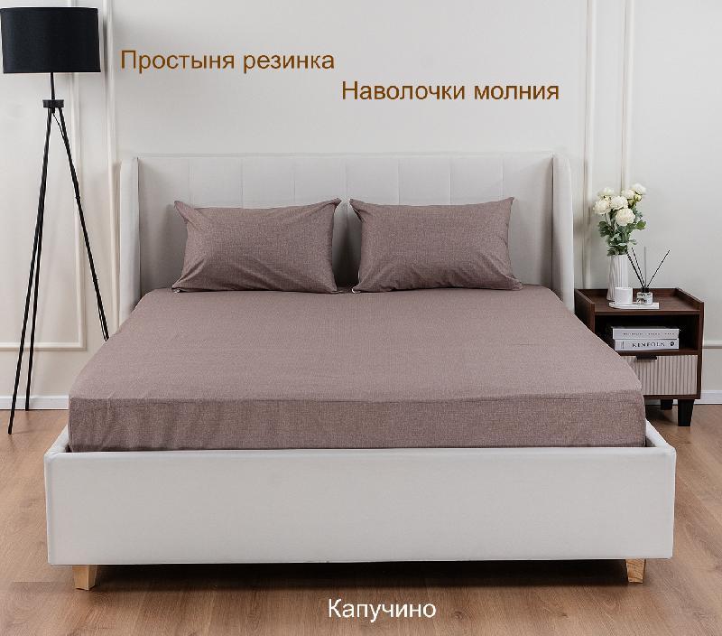 Набор постельных принадлежностей из поплина (простыня на резинке+наволочки) «Капучино» арт 87891