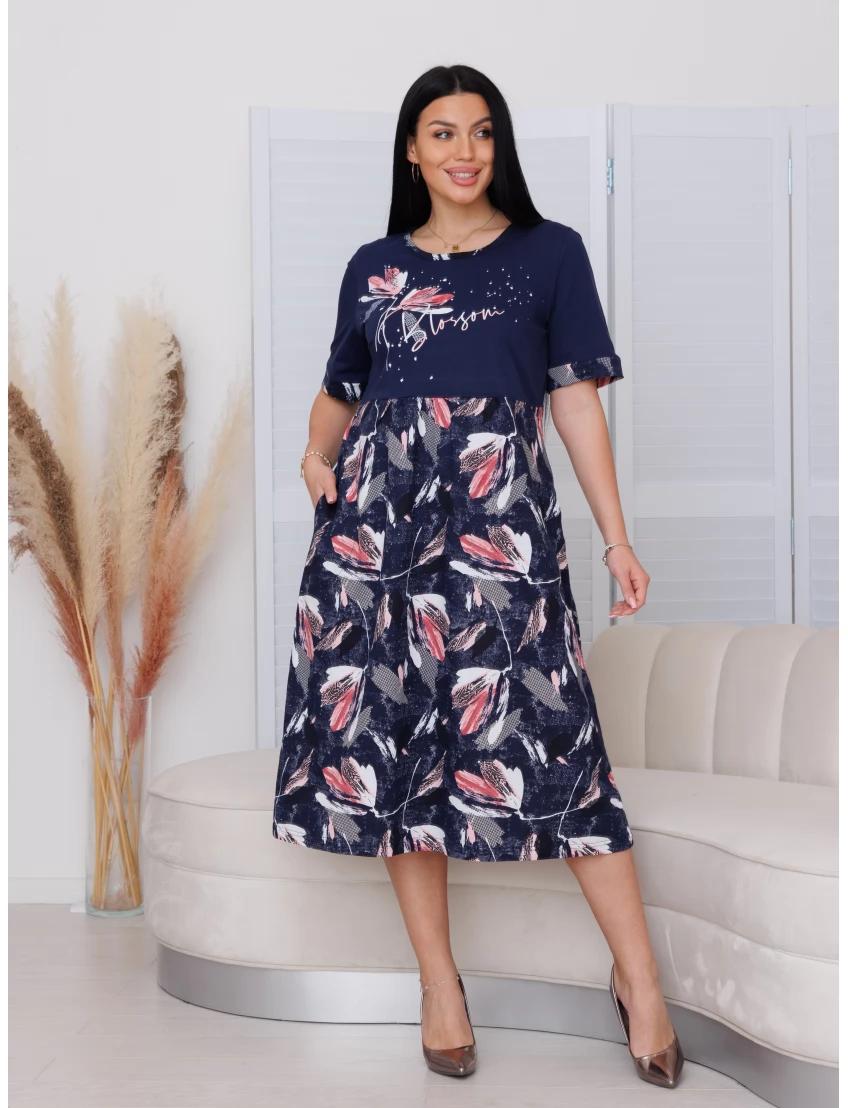 Женское платье из кулирки «Пл-167 (К) (сине-розовый)» арт 86720Женское платье из кулирки «Пл-167 (К) (темно-синий)» арт 86719
