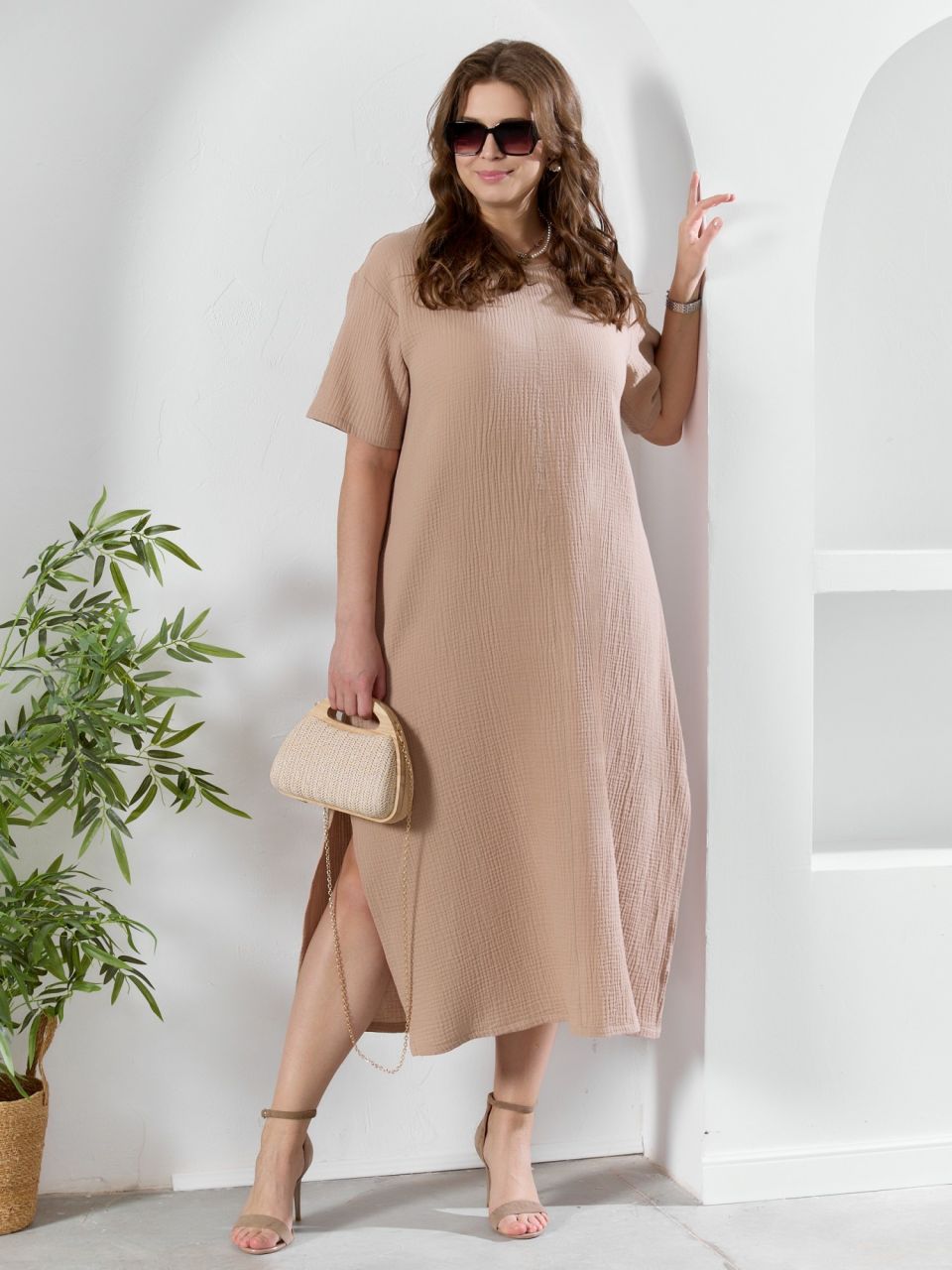 Женское платье из муслина «Вуаль-1 [бежевый]» арт 89840