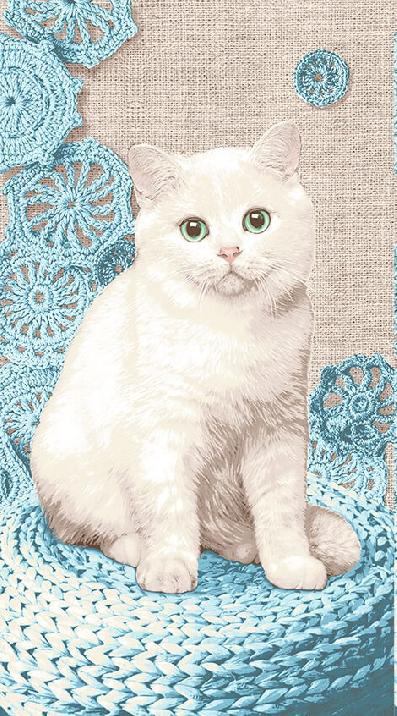 Сидит кот на голубом вязаном коврике. Отличный подарок на год Кота-Кролика.