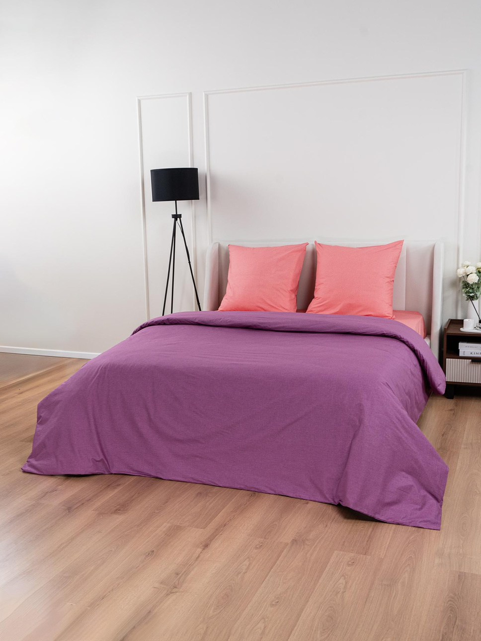 Премиум КПБ для дома изготовлено из поплина плотностью 115 г/м.кв. Простынь без резинки, пододеяльник и наволочки на молнии.