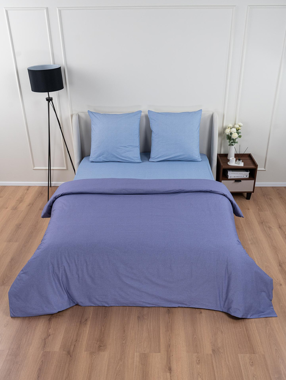 Премиум КПБ для дома изготовлено из поплина плотностью 115 г/м.кв. Простынь без резинки, пододеяльник и наволочки на молнии.