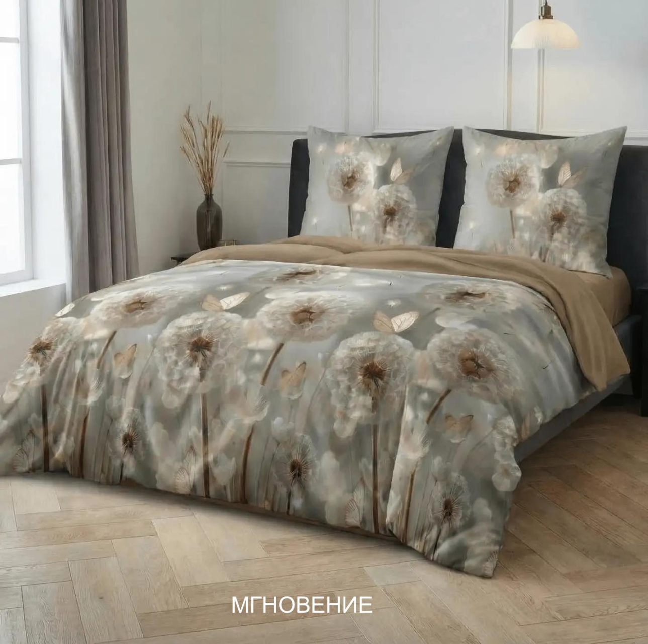 Цвет коричневый, бежевый. Рисунок цветы одуванчики. Наволочки в комплекте 70х70(без молнии).