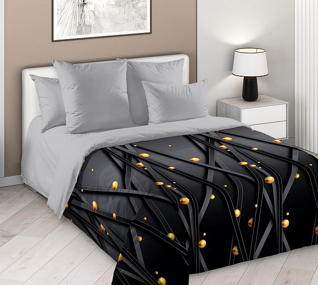 Чтобы не перегружать дизайн, комплект выпускается со сдержанным оформлением простыни и наволочек.