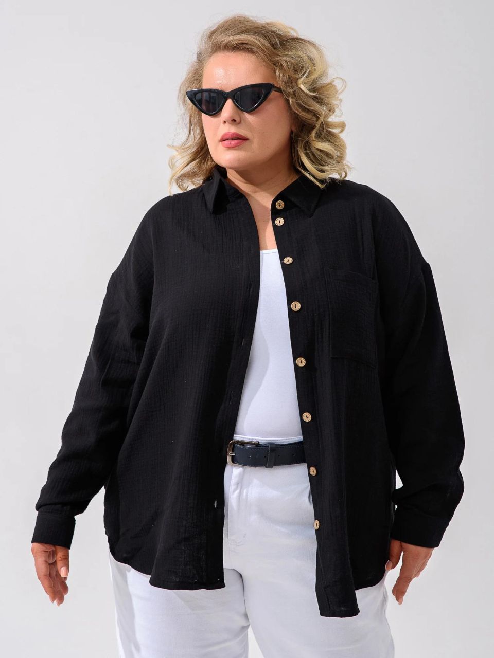 Женская рубашка из муслина «Муслин 2315-Мус (черный)» арт 86420