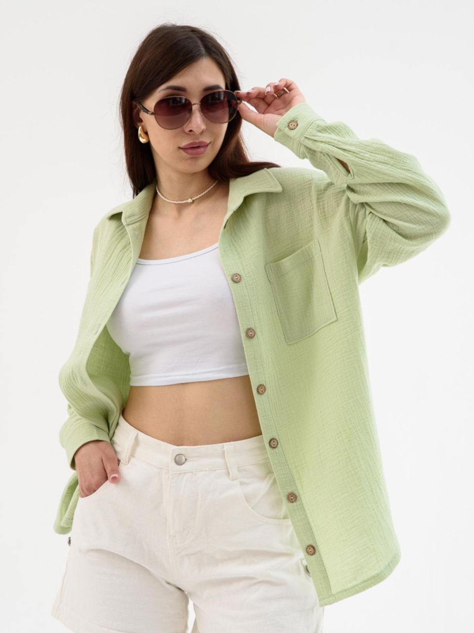 Женская рубашка из муслина «Муслин 2315-Мус (зеленый)» арт 83700