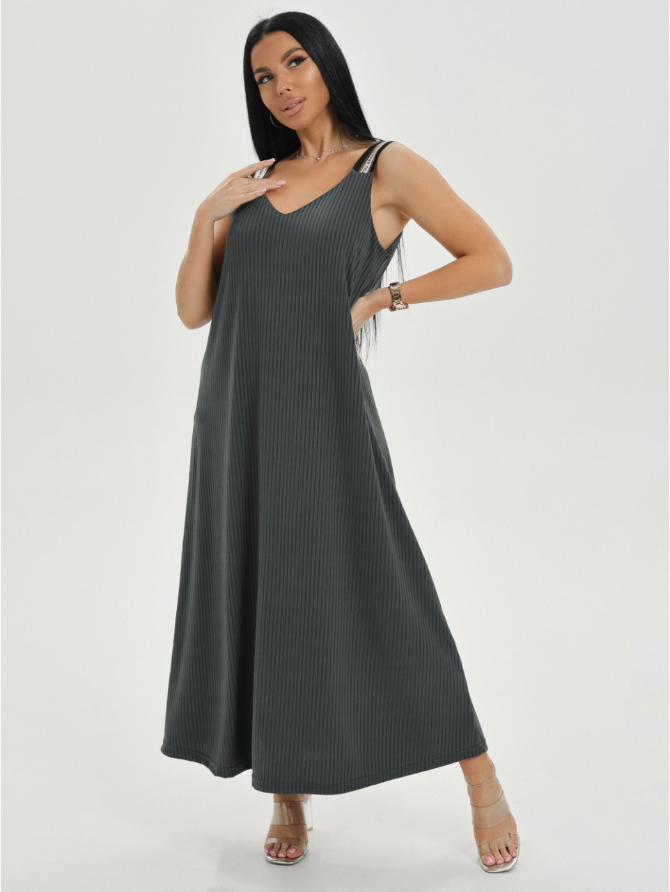 Женский сарафан из кашкорсе лапша «Барбара [графит]» арт 82474