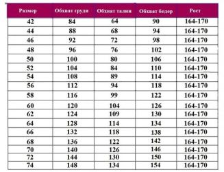 - Размерная сетка