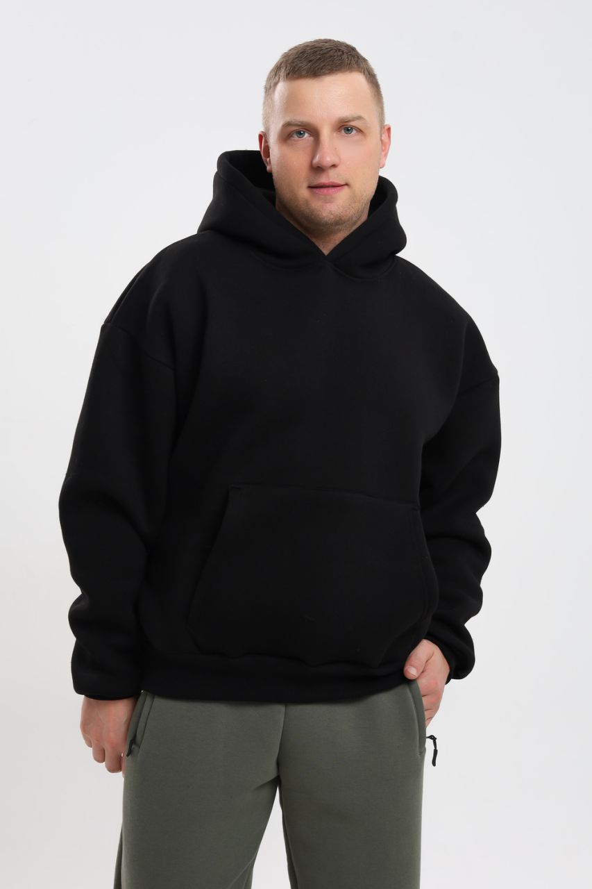 Толстовка мужская с капюшоном и с начесом станет незаменим элементом базового гардероба на каждый день. Кофта оверсайз с карманом кенгуру, рукава и низ на манжете. Выполнен из высококачественного футера 3-х нитка, ткань сохраняет форму после многих стирок. В такой толстовке будет комфортно в холодное время года осень, зима и весна. Свободный прямой широкий крой не сковывает телодвижения.