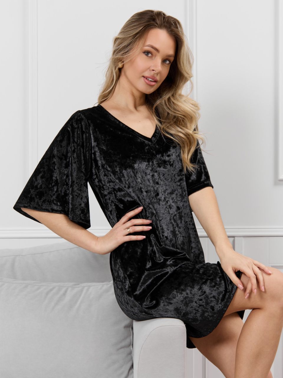 Женская туника из стрейч-велюра «Мерцание-1 [черный]» арт 87203