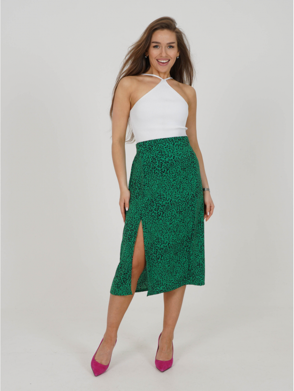 Женская юбка из штапеля «Хельга [леопард зеленый]» арт 83919