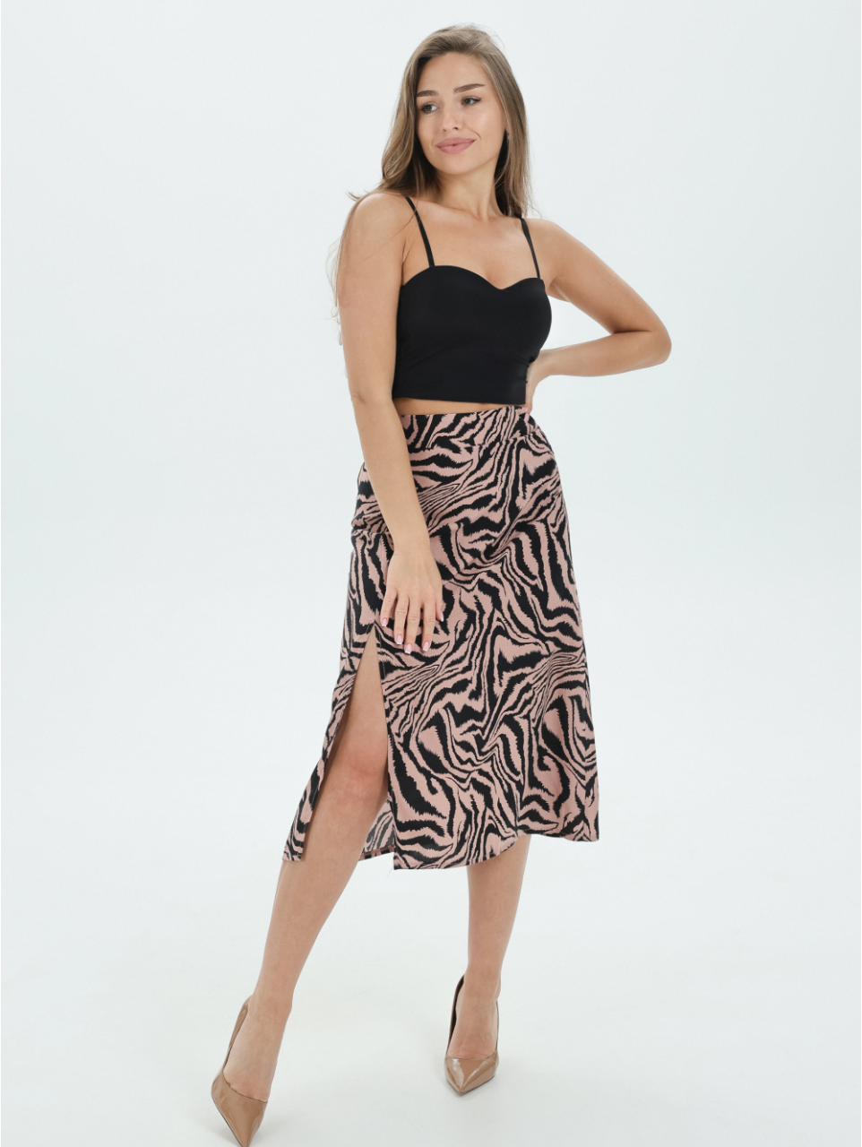 Женская юбка из милано «Хельга [зебра бежевая]» арт 83915